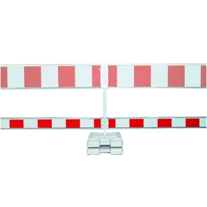 1 mm sendzimirverzinktes Stahlblech, gekantet, 100 mm hoch, rot-weiß reflektierend.